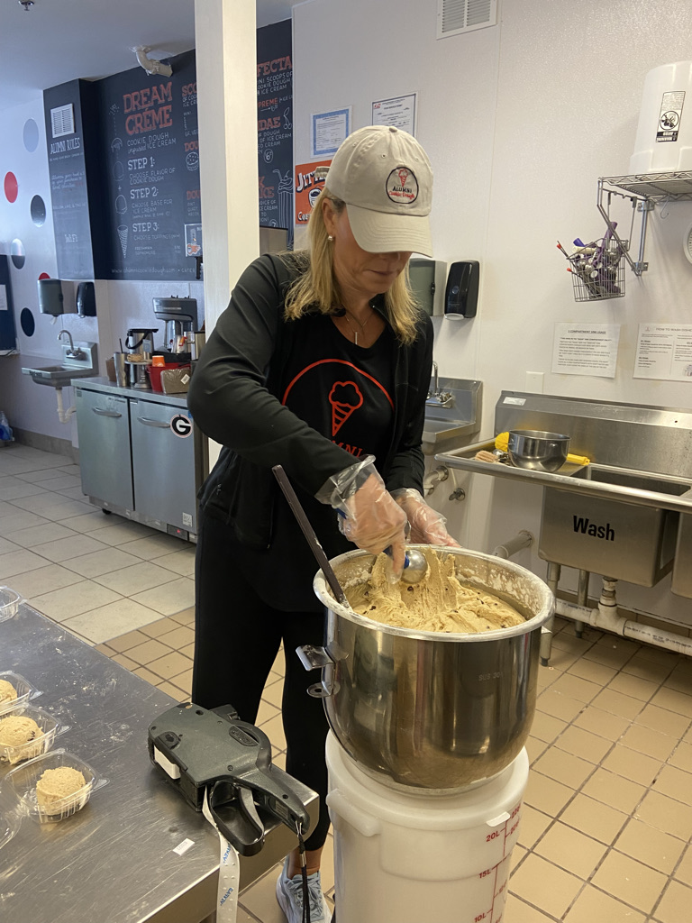 Dollander scoops cookie dough into pre-made containers that allow customers to buy now and eat later. (Photo/Audrey Pfitzner)