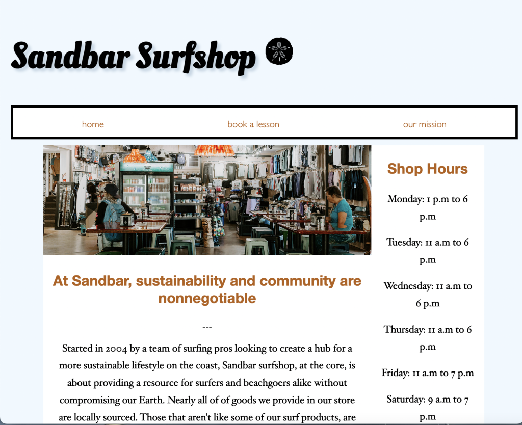 3-page website for a fictional business coded in HTML and CSS using the Adobe Dreamweaver program.